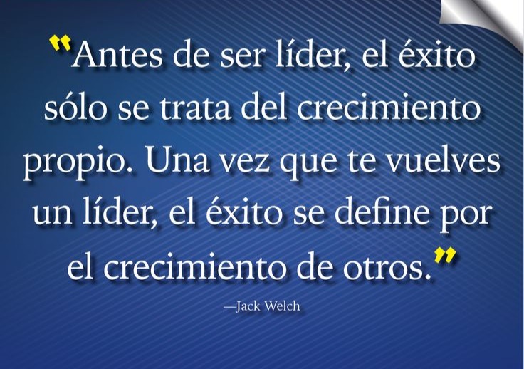“Antes de ser líder, el éxito solo se trata del crecimiento propio. Una vez que te vuelves un líder, el éxito se define por el crecimiento de otros”. (Jack Welch).